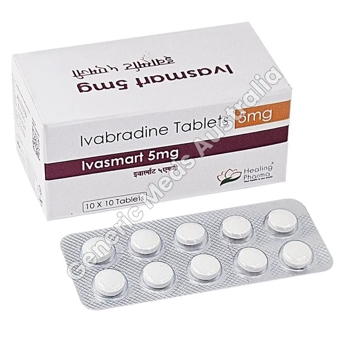 Ivasmart 5 mg Tablet (Ivabradine) is used to manage chronic stable angina and heart failure by lowering heart rate, improving blood circulation, reducing chest pain, and supporting cardiac health.